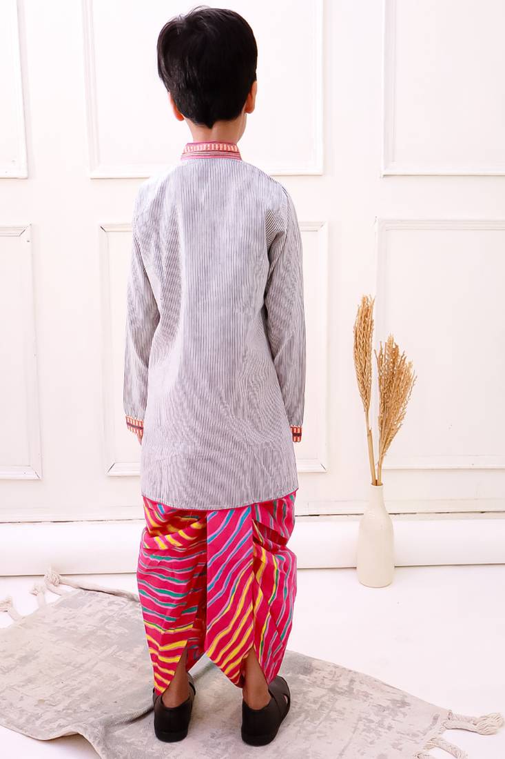 Cotton fullsleeves stripe design kurta with dhoti - grey & pink