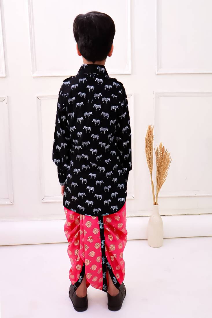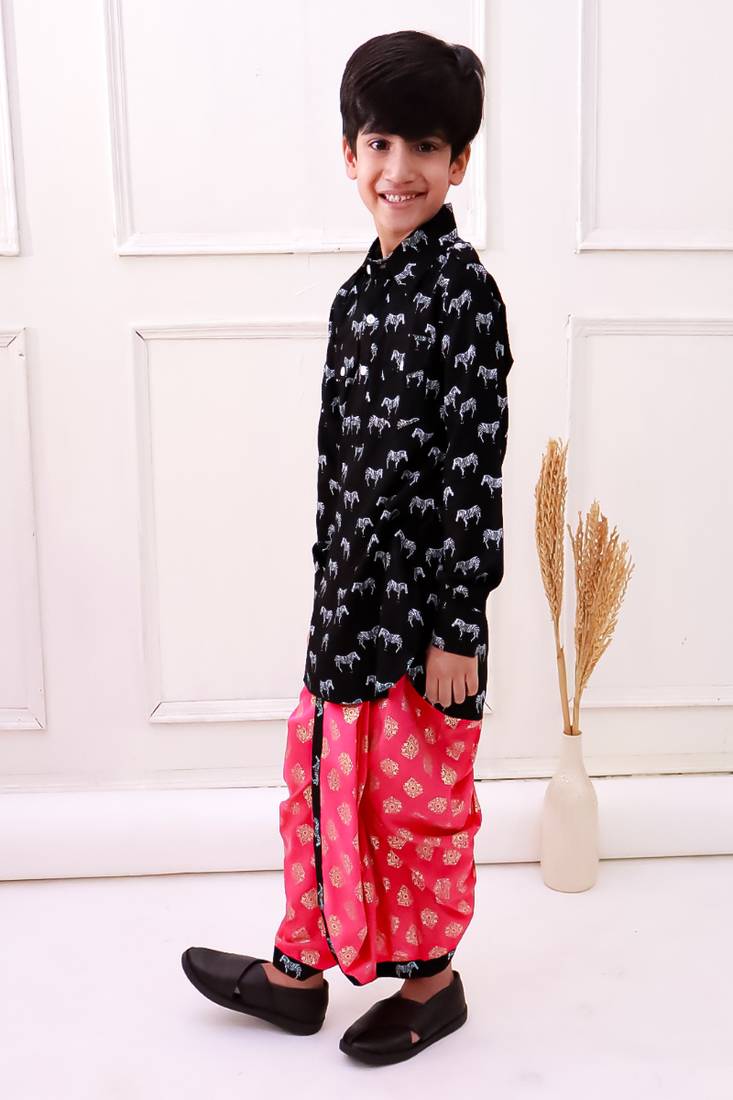Rayon fullsleeves zebra printed kurta with dhoti - black & coral