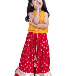 | Product Name | Sleevless Solid Top With Printed Lehenga Yellow & Red | |