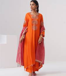 Orange embroidered chanderi silk kurta set