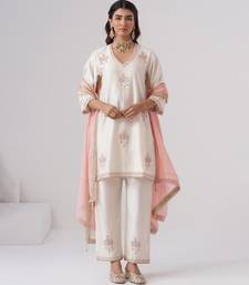 | Product Description | This White Embroidered Chanderi Silk Kurta Set Radiates Festive Elegance And Graceful Charm. Crafted From Lightweight, Lustrous Chanderi Silk, It Features Intricate Embroidery That Adds A Refined, Traditional Touch. Perfect For Celebrations And Special Occasions, It Offers Comfort, A Flattering Silhouette, And Timeless Ethnic Appeal.