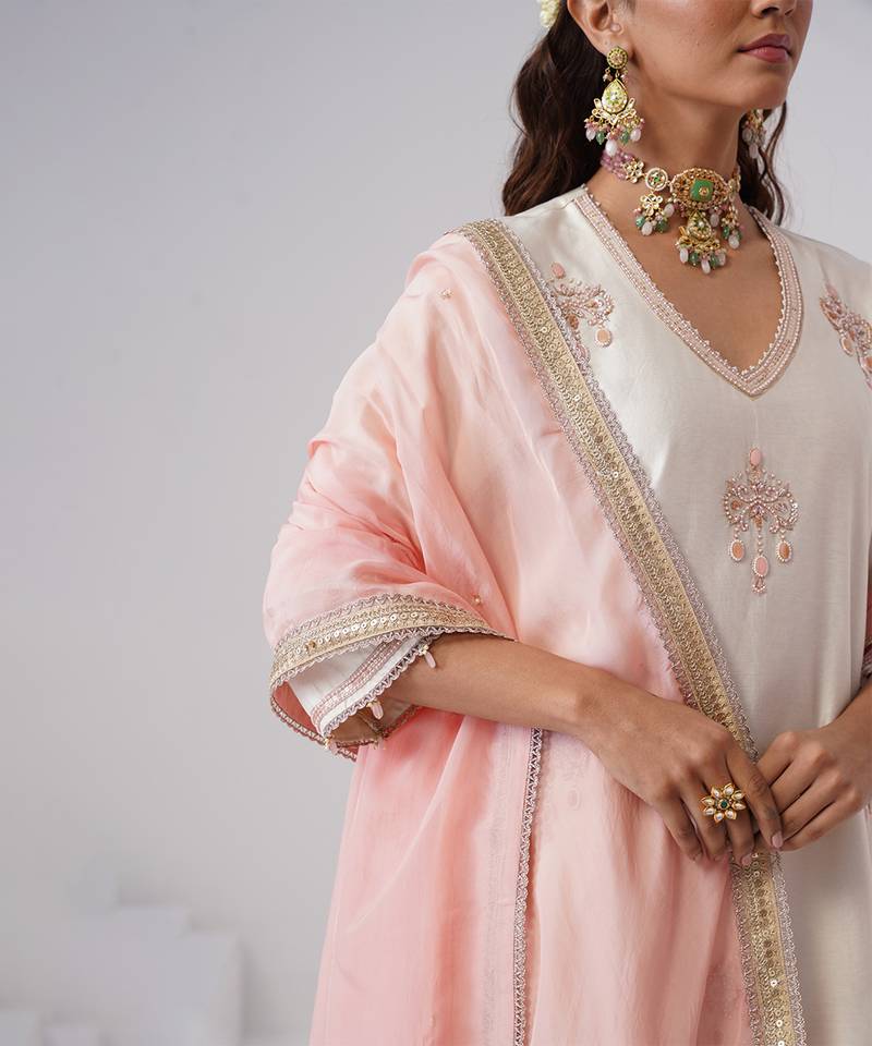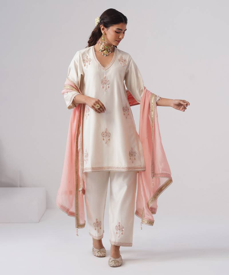| Product Name | White Embroidered Chanderi Silk Kurta Set | |