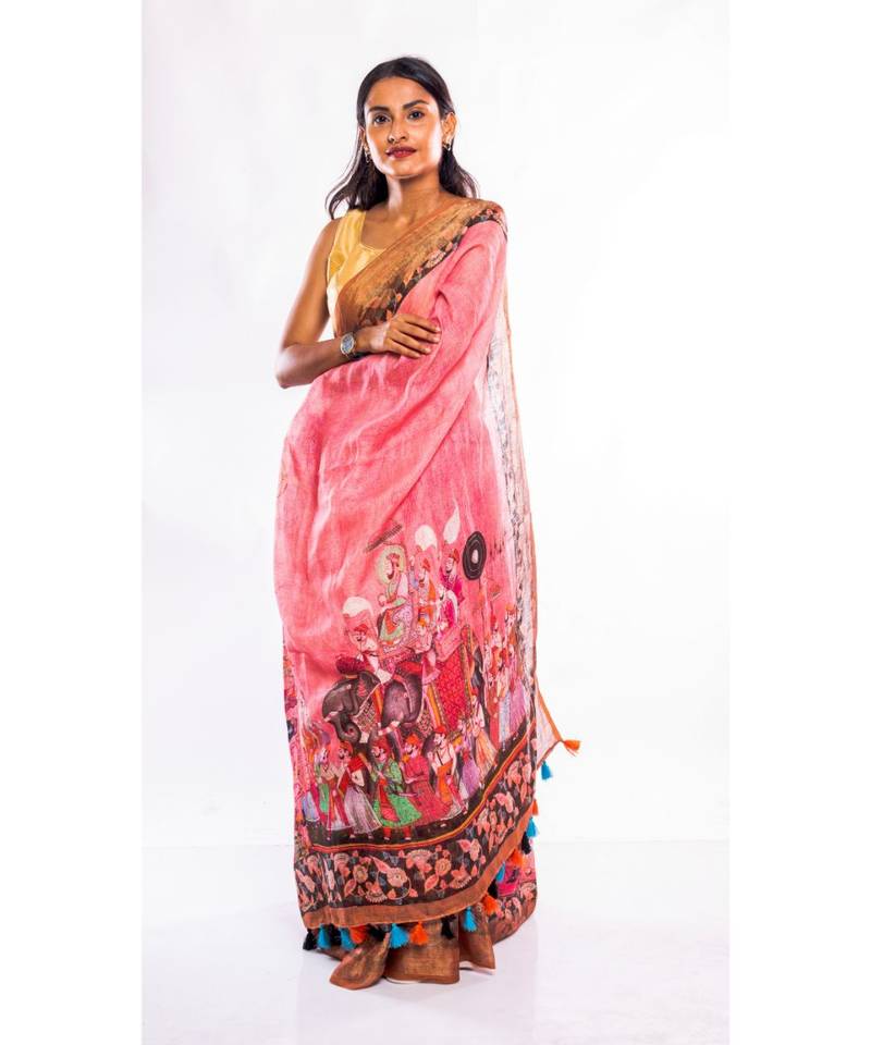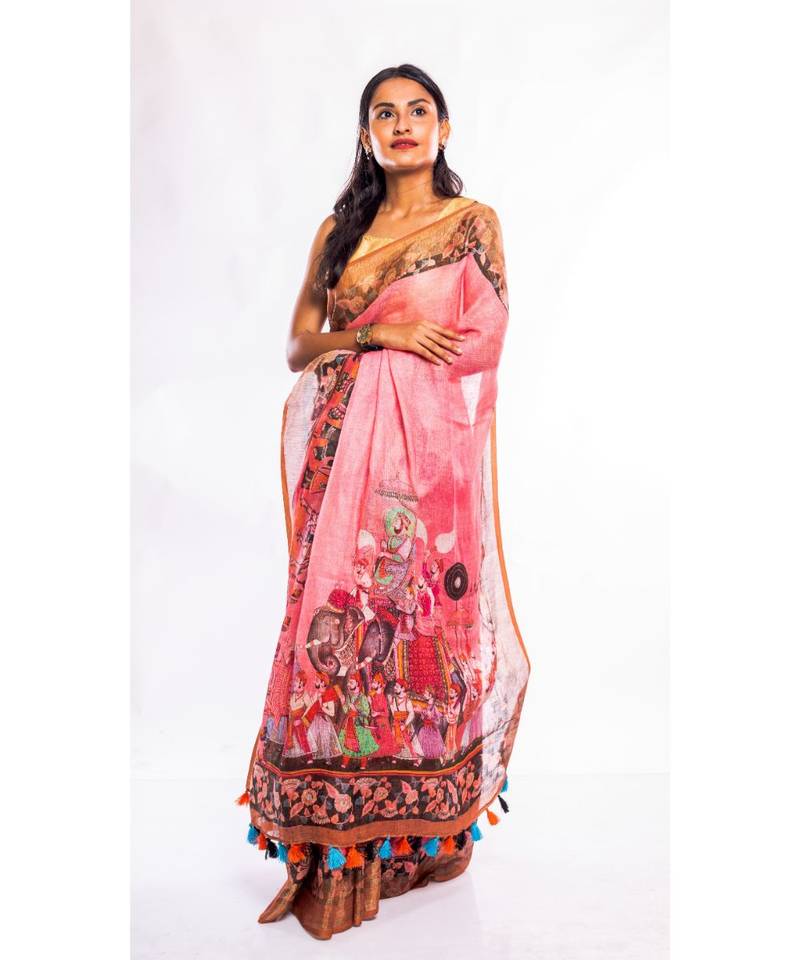| Product Name | Unitex Fashion Pink Printed Linen Saree With Blouse | |