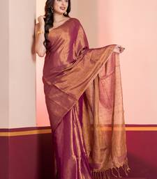 Purple golden dual tone linen tissue saree with zari, with blouse