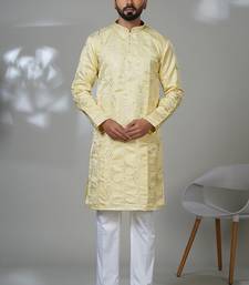 Aesthetic yellow embroidery kurta for men | premium designer men's kurta