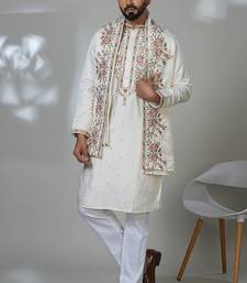 White multicolor neck embroidery kurta with dupatta for men | premium designer men's kurta
