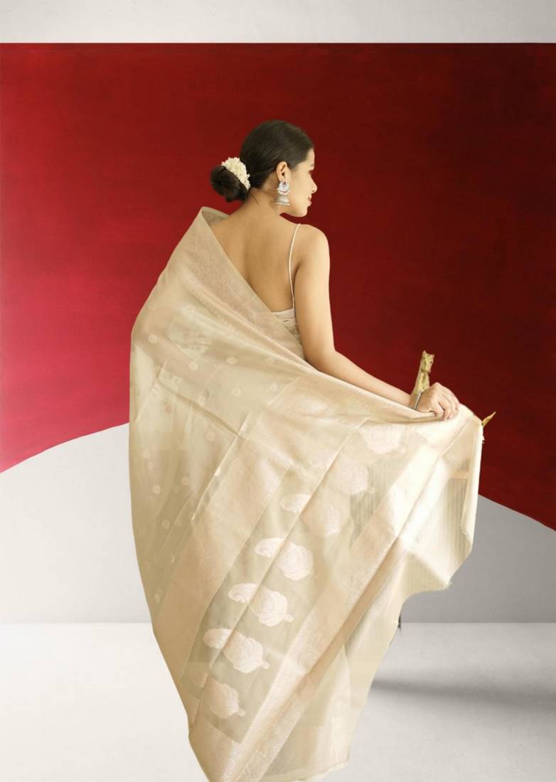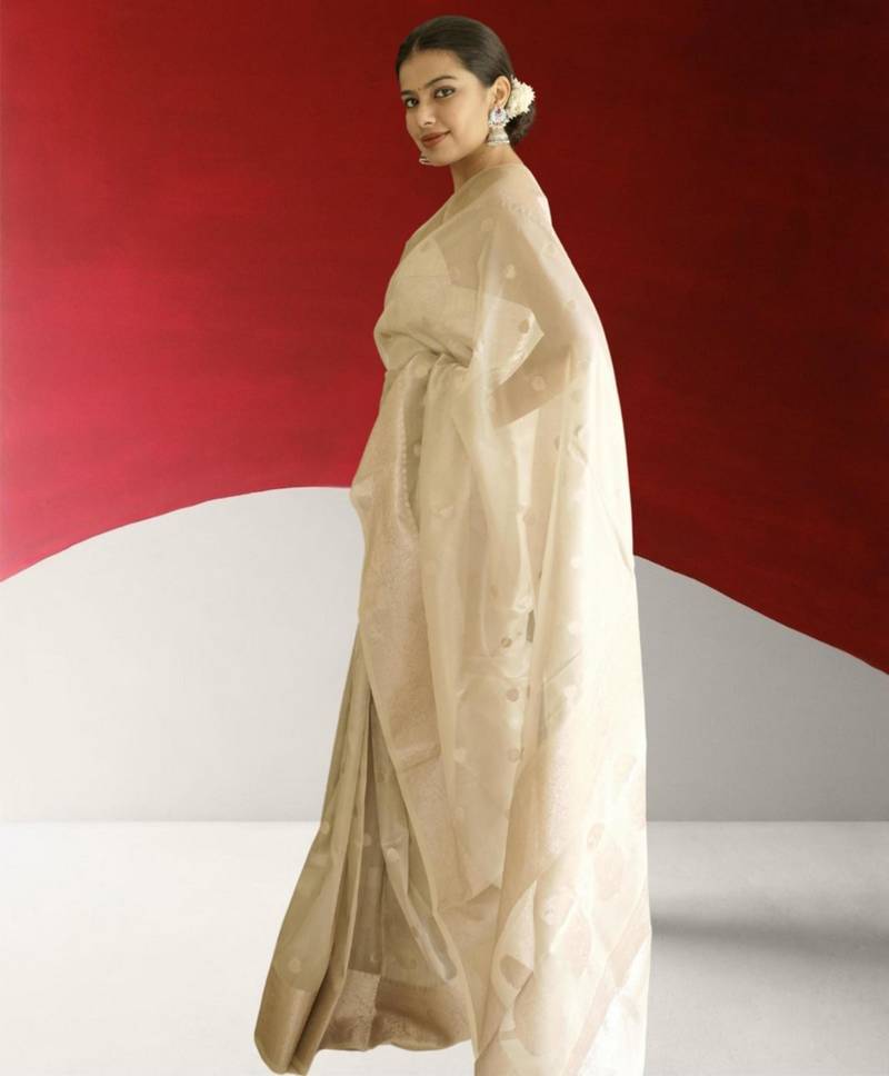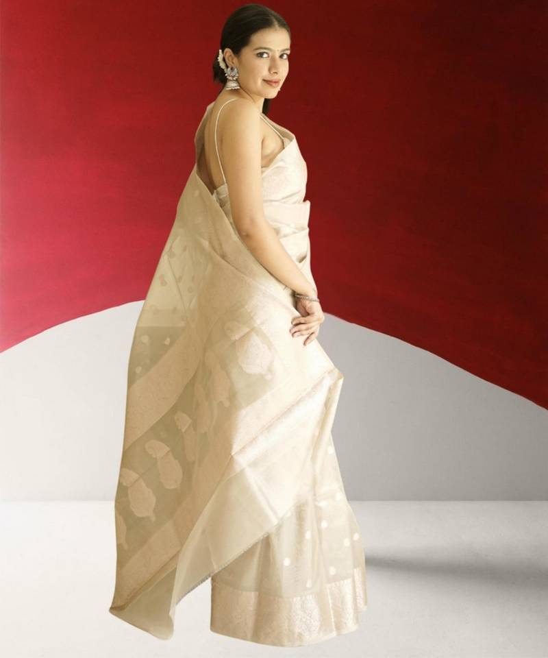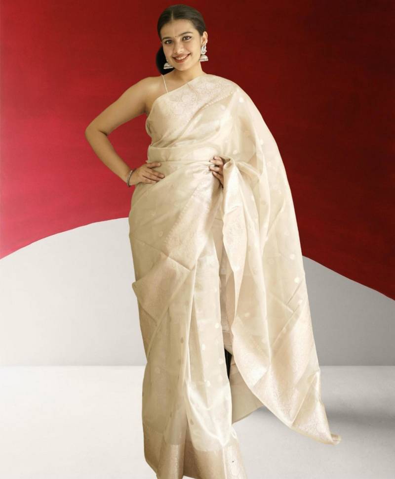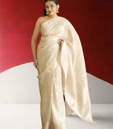 Ivory banarasi silk blend saree