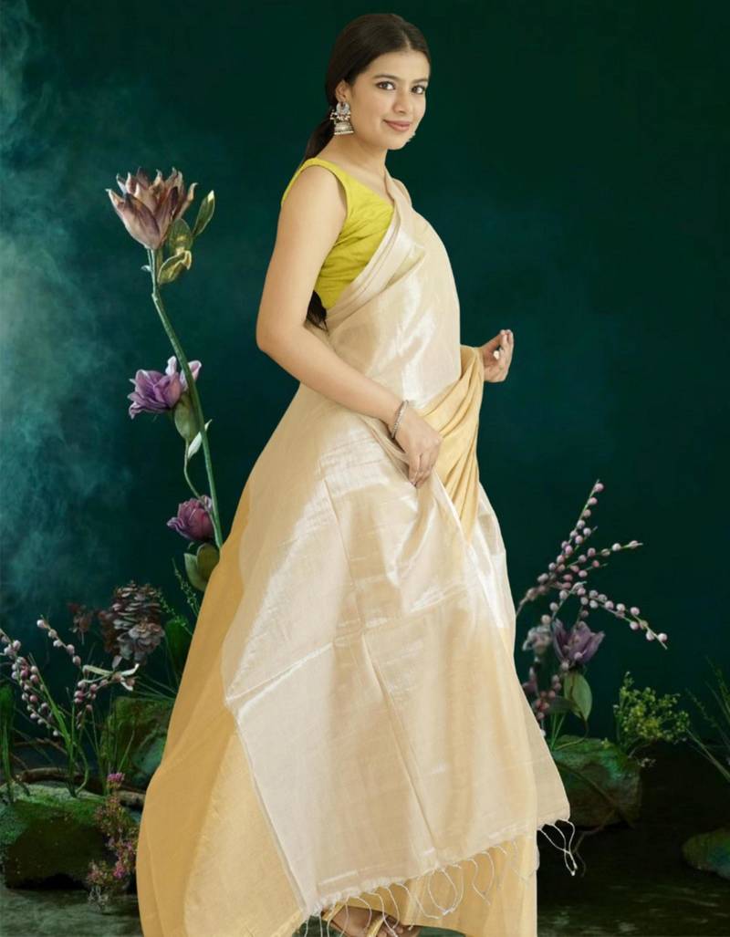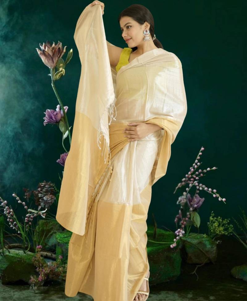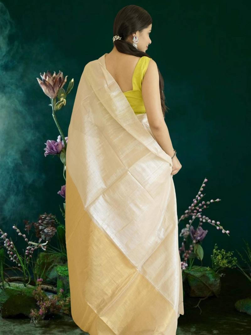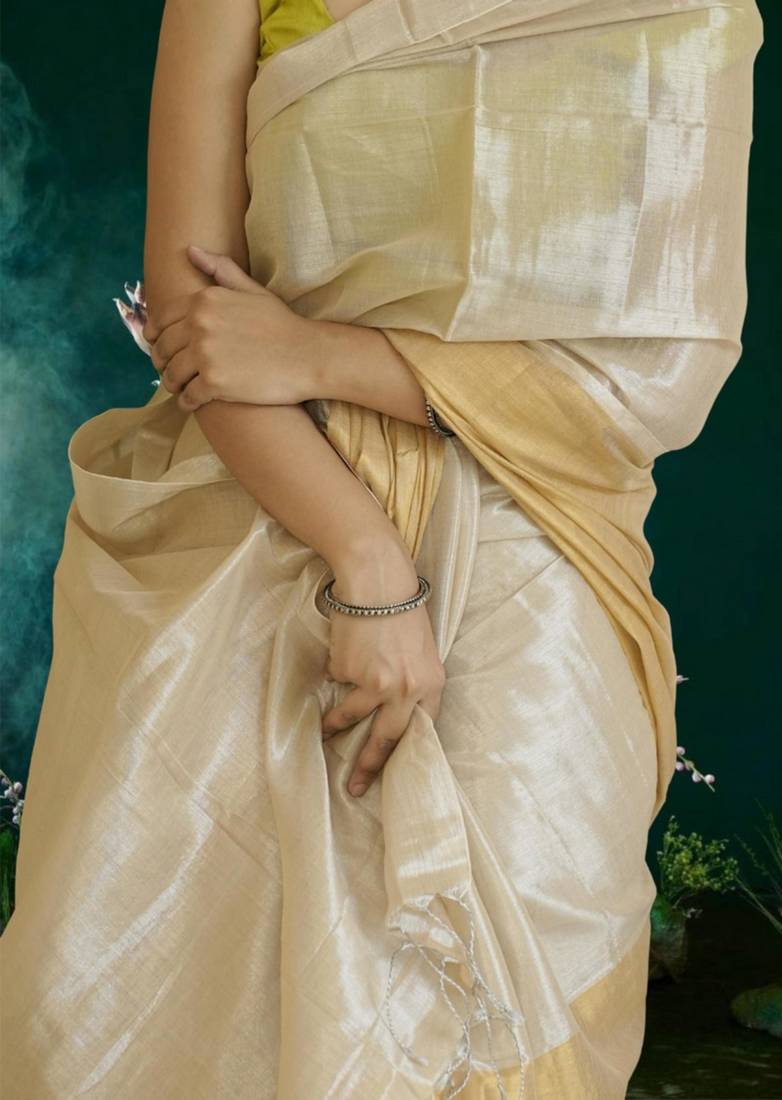 Ivory & gold glass tissue silk blend saree
