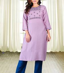 Purple colour heavy rayon embroidered designer hand work kurti with pant set