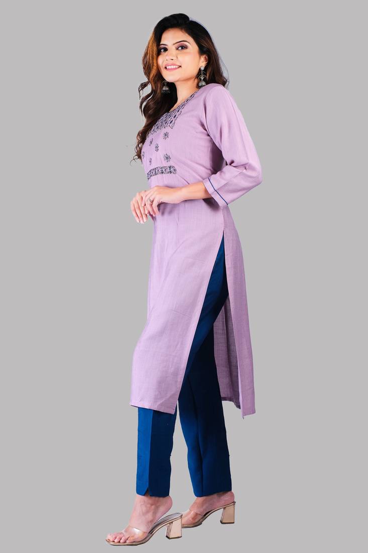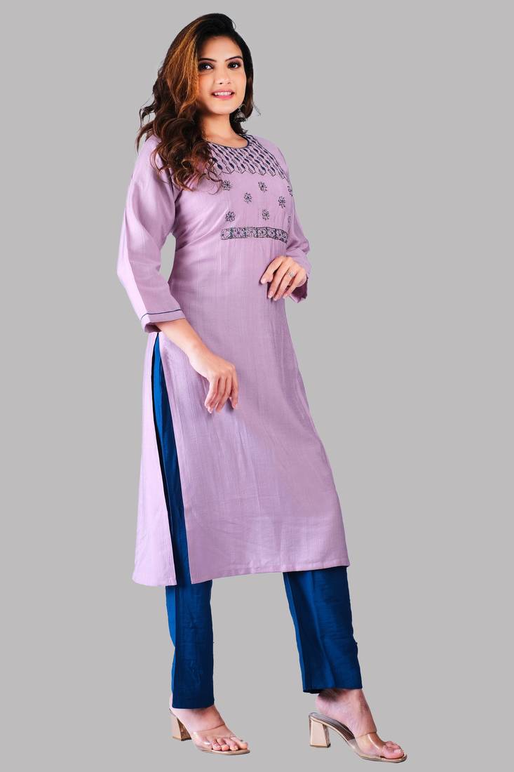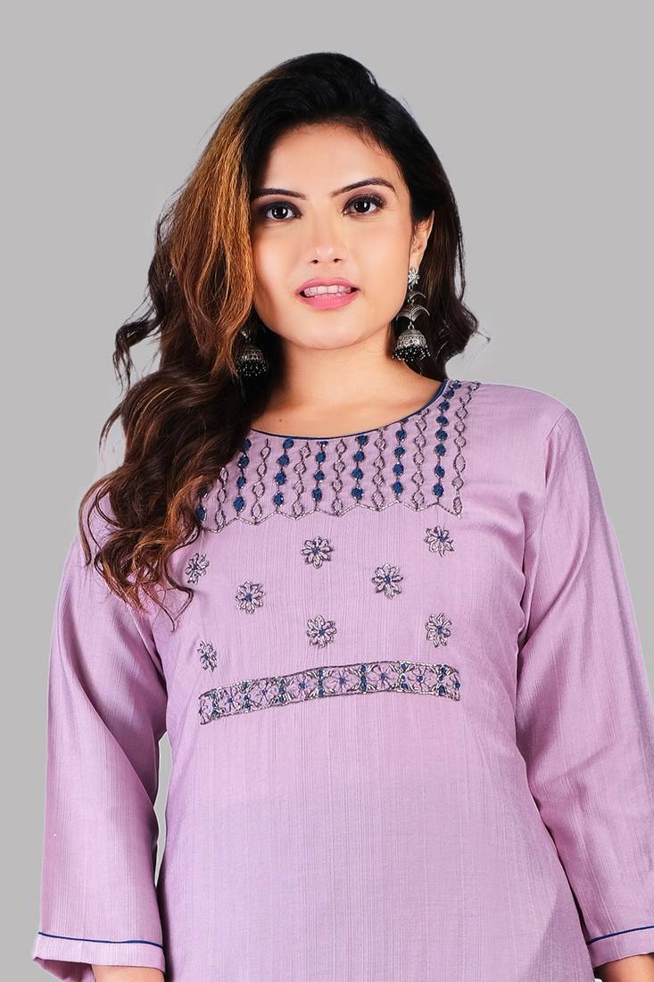 | Product Name | Purple Colour Heavy Rayon Embroidered Designer Hand Work Kurti With Pant Set | |