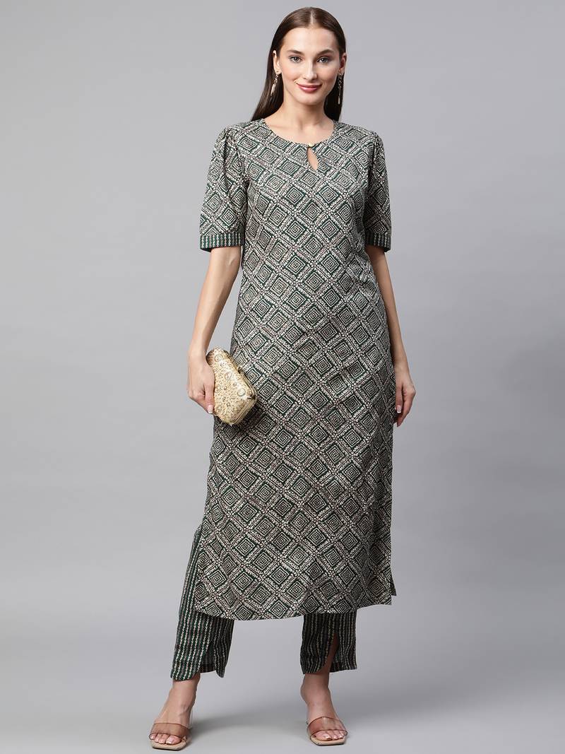 | Product Description | V Tradition Women Green Printed Kurta With Palazzos |