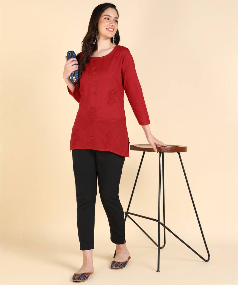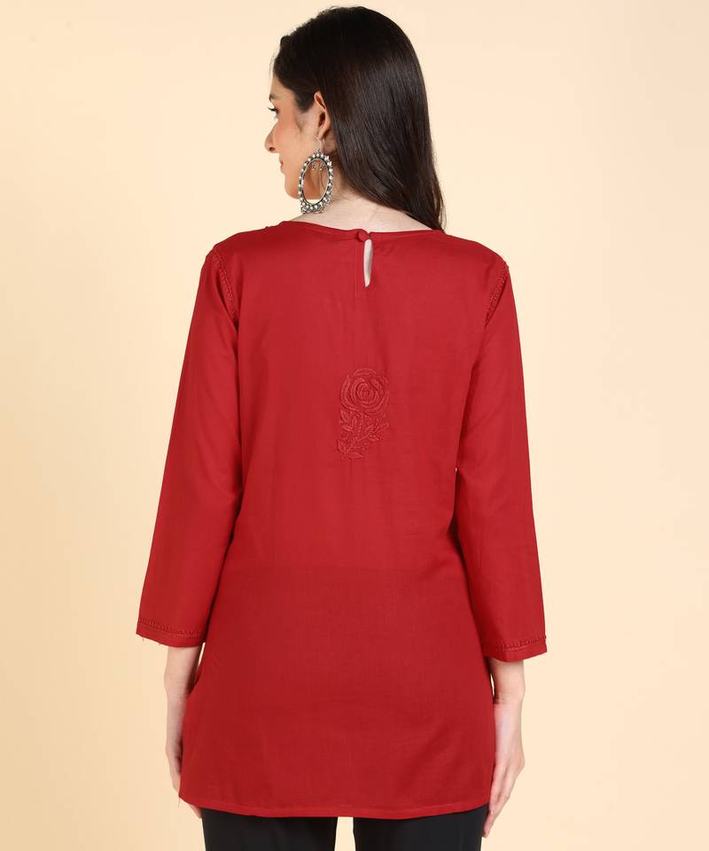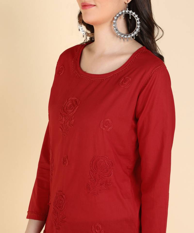 | Product Name | Vahson Women Floral Rose Chikankari Short Cotton A Line Red Kurti | |