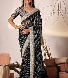 Black embriodered lace georgette bollywood saree with blouse piece.