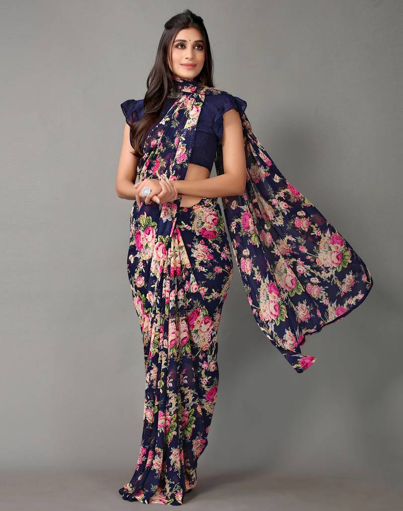 | Product Name | Navy Blue Printed Georgette Saree With Blouse | |
