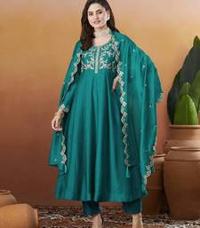 | Product Name | Elegant Aqua Blue Embroidered Anarkali Kurta Set With Dupatta & Pant | |