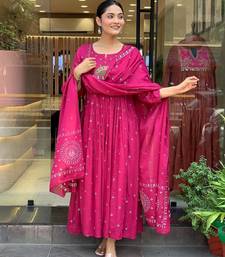 Add Vibrant Elegance To Your Ethnic Wardrobe With This Stunning Rani Pink Anarkali Kurta Set, Crafted In Premium Rayon Fabric For Superior Comfort And Breathability. Designed For Festive Celebrations, Traditional Functions, Casual Gatherings, And Daytime Events, This Outfit Beautifully Blends Comfort With Rich Ethnic Detailing.The Kurta Features A Flowing Anarkali Silhouette That Creates Graceful Movement And A Flattering Fit For All Body Types. The Highlight Of The Kurta Is The Intricately Embroidered Yoke, Showcasing A Traditional Peacock Motif Embroidery In Contrasting Thread Colors. This Centerpiece Embroidery Is Framed With Decorative Embroidered Borders, Adding A Handcrafted And Festive Appeal To The Design.The Kurta Body Is Enhanced With All Over Buti Style Embroidery, Evenly Spaced To Give A Refined And Elegant Look Without Overwhelming The Fabric. The Hemline Is Beautifully Finished With Traditional Circular Motif Embroidery, Creating A Visually Rich And Balanced Appearance. The Sleeves Are Designed With Delicate Embroidered Detailing, Maintaining Continuity With The Overall Pattern.