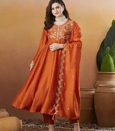 Elegant rust embroidered anarkali kurta set with dupatta & pant