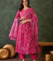Elevate Your Everyday Ethnic Wardrobe With This Elegant Rani Pink Embroidered Kurta Set, Designed To Blend Comfort With Timeless Indian Artistry. Crafted For Modern Women Who Love Traditional Aesthetics, This Kurta Set Showcases Delicate Craftsmanship And Graceful Patterns That Make It Suitable For Daily Wear, Festive Gatherings, Office Wear, And Casual Celebrations.The Kurta Features Intricate All Over Floral Motifs Created Using Fine Dotted Print Work, Inspired By Traditional Indian Block And Bandhani Style Designs. The Floral Vines Are Evenly Spread Across The Fabric, Giving The Outfit A Balanced And Visually Pleasing Look. The Neckline Is Enhanced With Subtle Vertical Printed Detailing That Adds Structure And Elegance Without Overpowering The Design.Complementing The Kurta Is A Matching Dupatta Adorned With Geometric And Diagonal Dotted Patterns, Creating A Beautiful Contrast With The Floral Kurta Design. The Coordinated Print Placement Adds Depth And Movement To The Overall Outfit, Making It Look Rich Yet Minimal. The Dupatta Drapes Effortlessly, Enhancing The Silhouette With A Soft, Flowy Appeal.