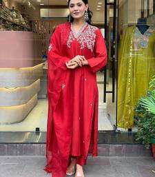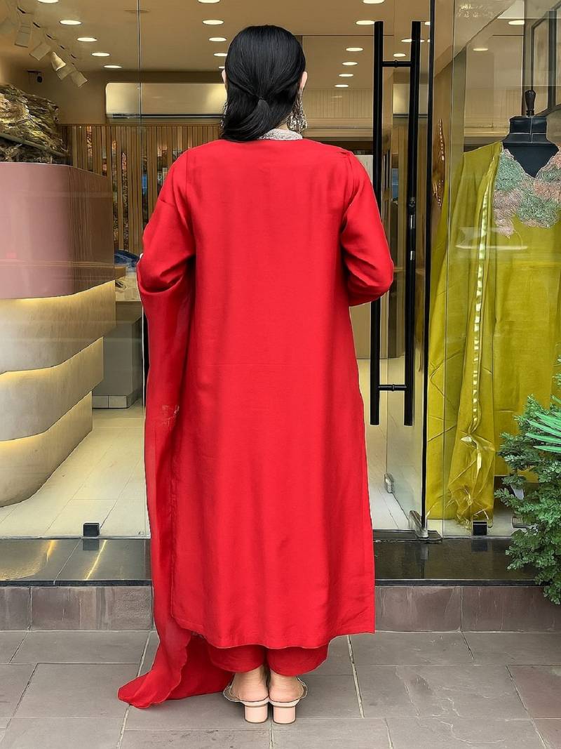 | Product Name | Women's Trending Red Embroidered Kurta Set Featuring Elegant White Floral Neckline Work | |