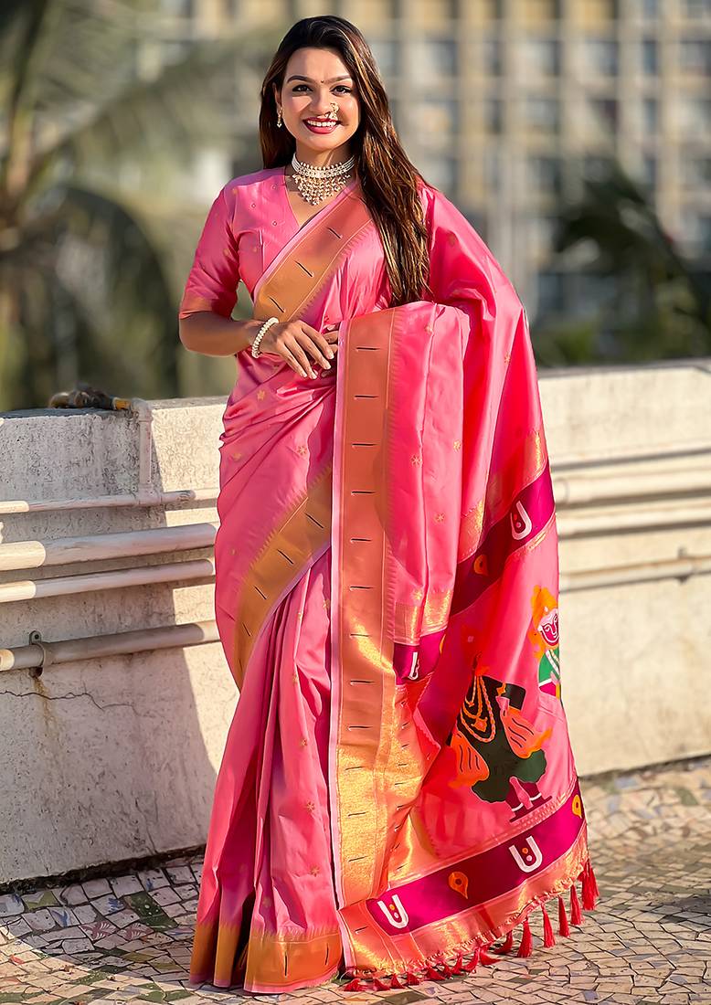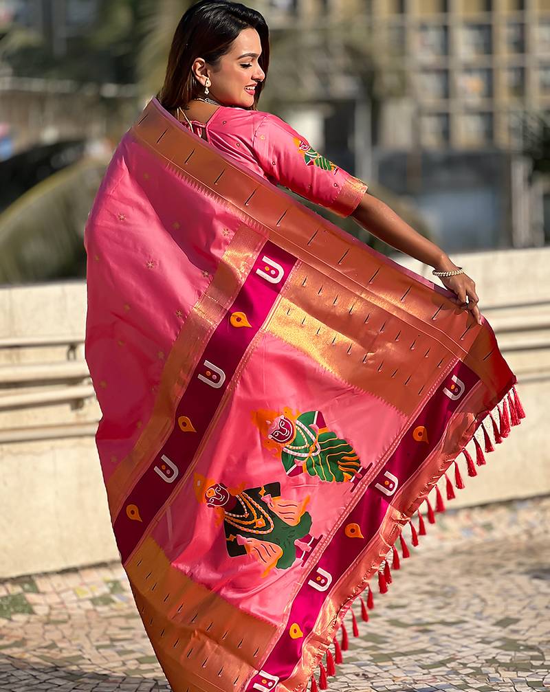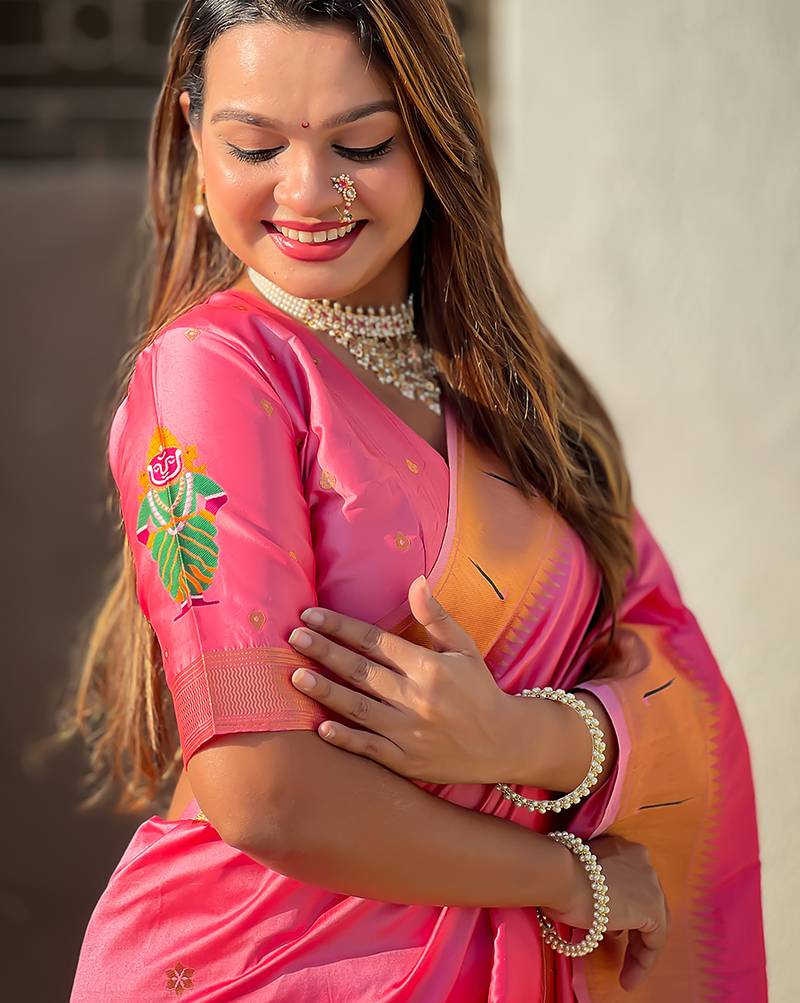 | Product Name | Baby Pink Woven Self Design Pure Silk Paithani Saree With Blouse | |