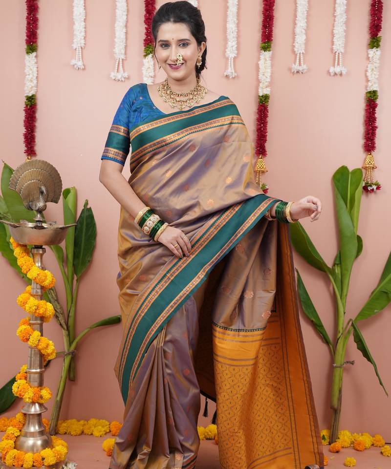 | Product Description | Crafted From Premium Quality Fabric, It Offers A Smooth Texture And Graceful Drape, Making It Perfect For Festive Occasions, Weddings, And Cultural Celebrations. The Rich Pallu Showcases Detailed Craftsmanship With Elaborate Zari Work, Adding A Regal Finish To The Ensemble. |