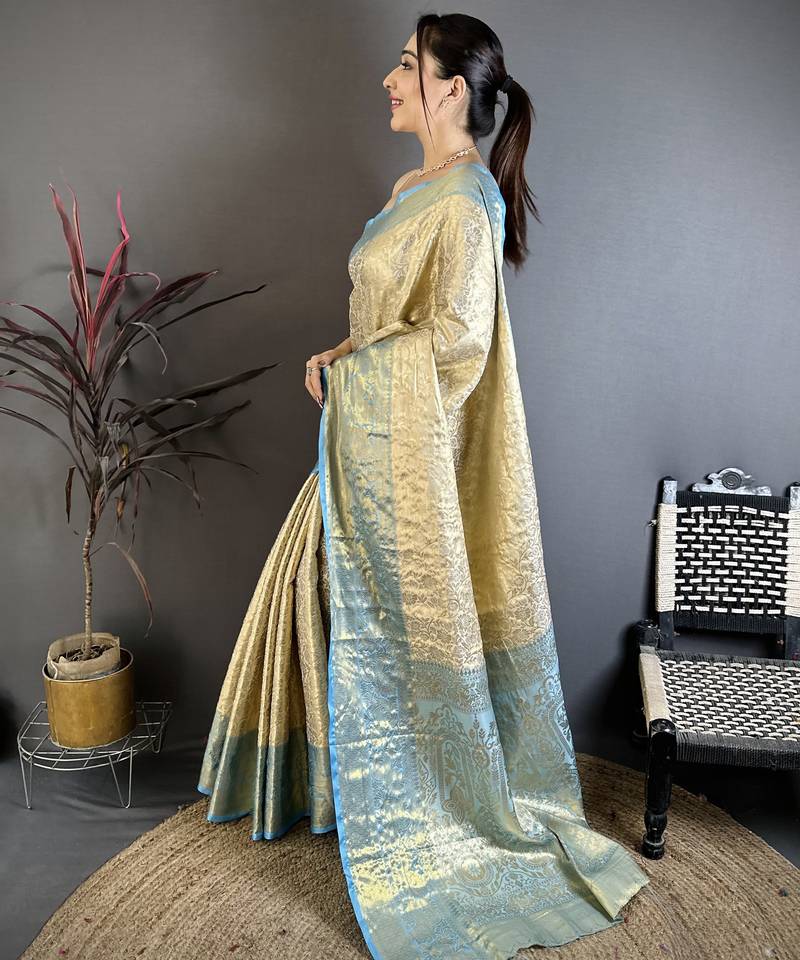 | Product Description | Elevate Your Ethnic Wardrobe With This Exquisite Golden Silk Saree, Beautifully Adorned With Rich Accents. Crafted With Intricate Zari Weaving, The Saree Features Elegant Traditional Motifs And A Luxurious Sheen That Adds A Regal Touch To Your Look. The Finely Detailed Border And Pallu Showcase Timeless Artistry, Making It Perfect For Weddings, Festive Occasions, And Special Celebrations. Paired With A Complementing Blouse, This Saree Effortlessly Blends Classic Charm With Contemporary Elegance. Its Soft, Graceful Drape Ensures Both Comfort And Sophistication, Allowing You To Make A Lasting Impression Wherever You Go. |