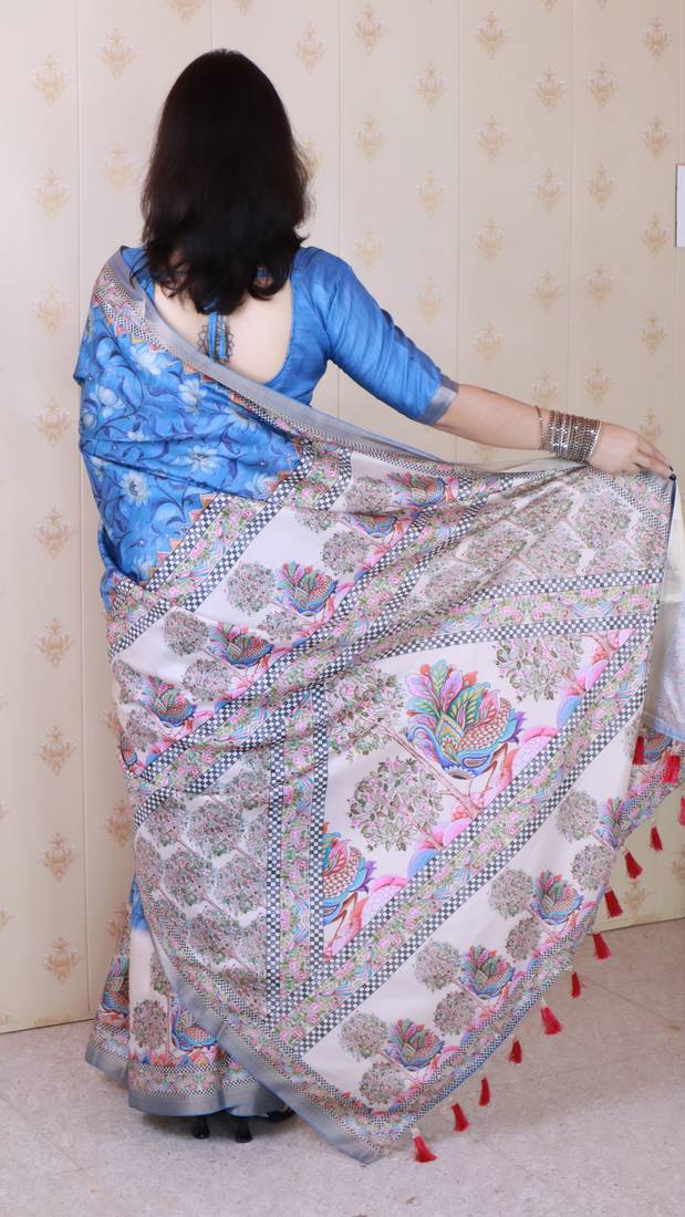 | Product Name | Blue Printed Tussar Silk Printed Saree With Blouse | |