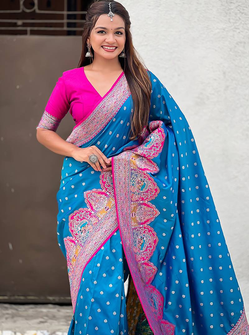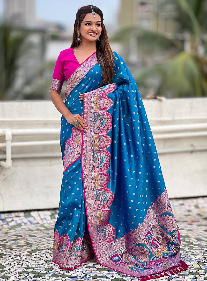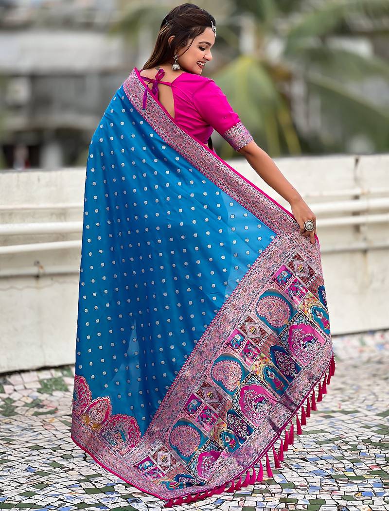 | Product Name | Blue Woven Self Design Pashmina Silk Saree With Blouse | |