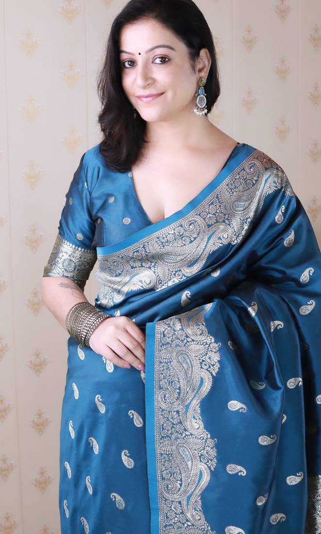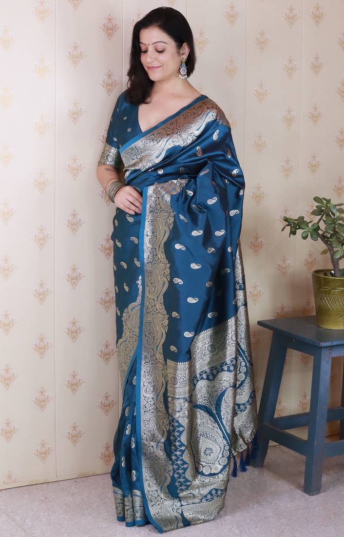 | Product Name | Blue Woven Self Design Pure Silk Banarasi Saree With Blouse | |