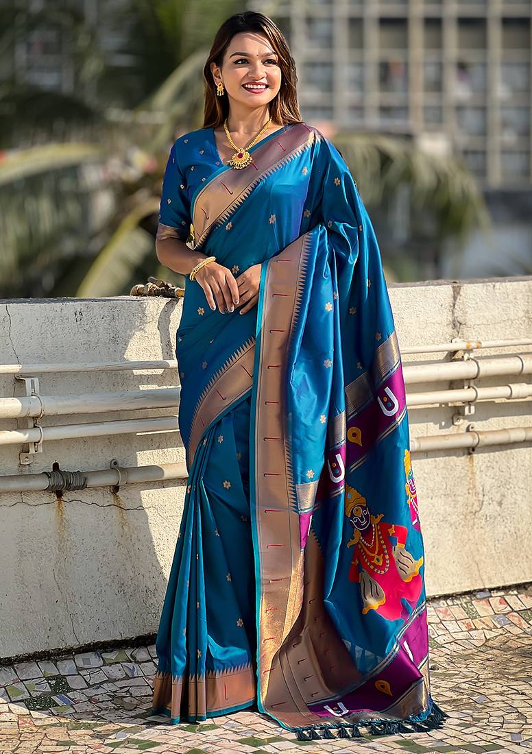 | Product Name | Blue Woven Self Design Pure Silk Paithani Saree With Blouse | |