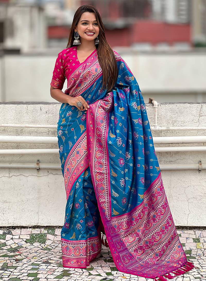 | Product Name | Blue Woven Self Design Silk Blend Patola Saree With Blouse | |