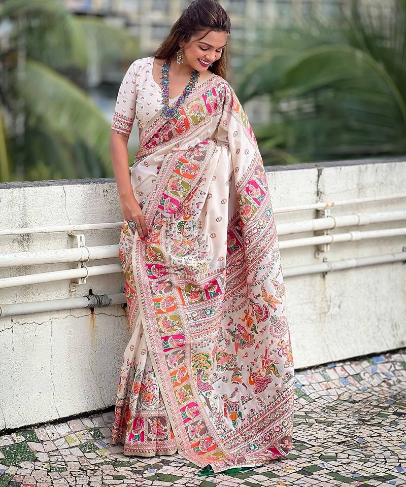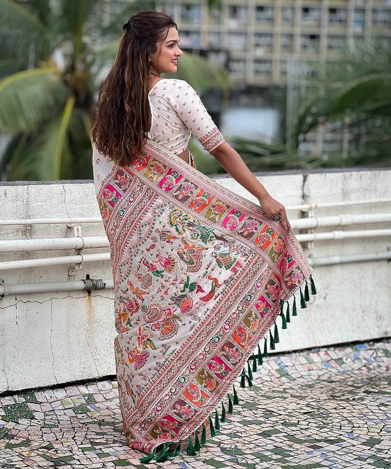| Product Name | Cream Woven Self Design Pashmina Silk Saree With Blouse | |