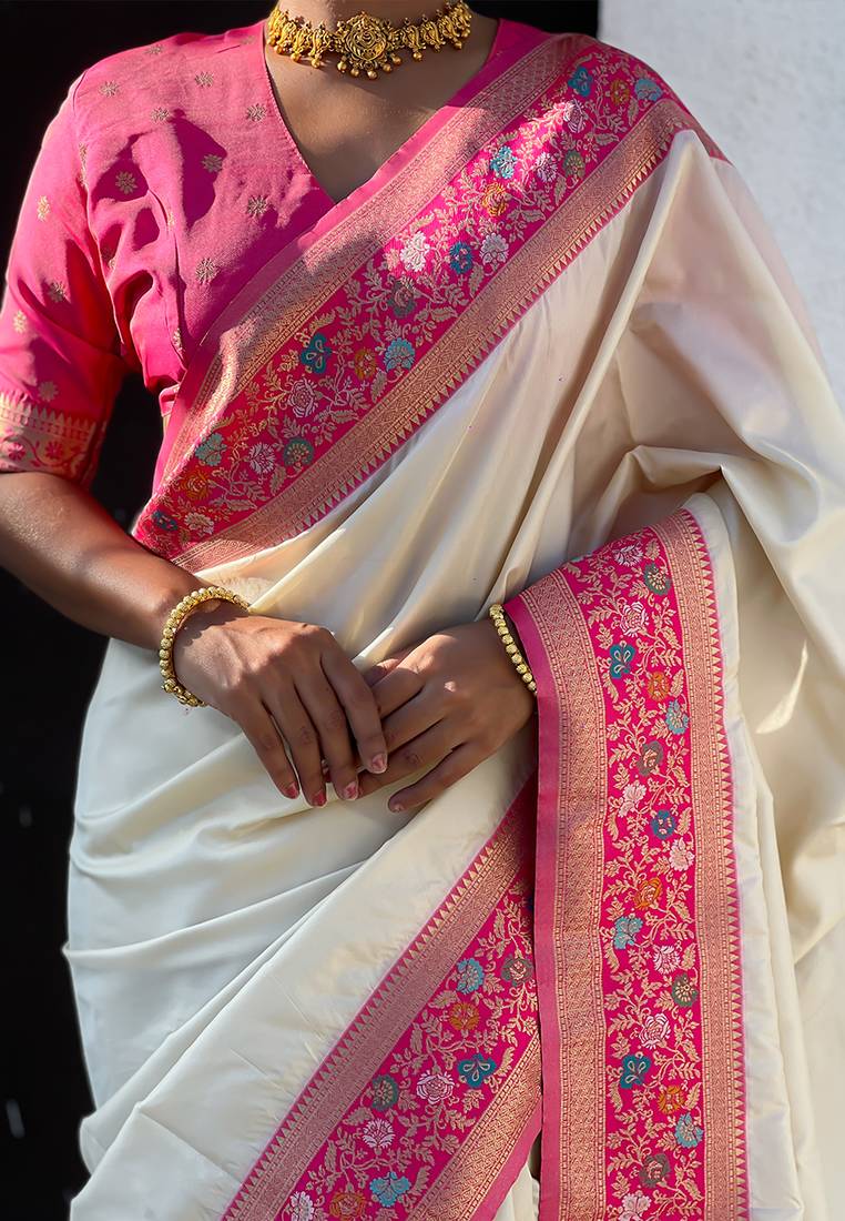| Product Name | Cream Woven Self Design Pure Silk Paithani Saree With Blouse | |