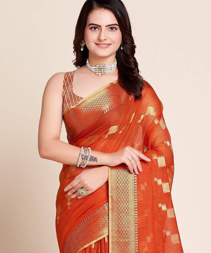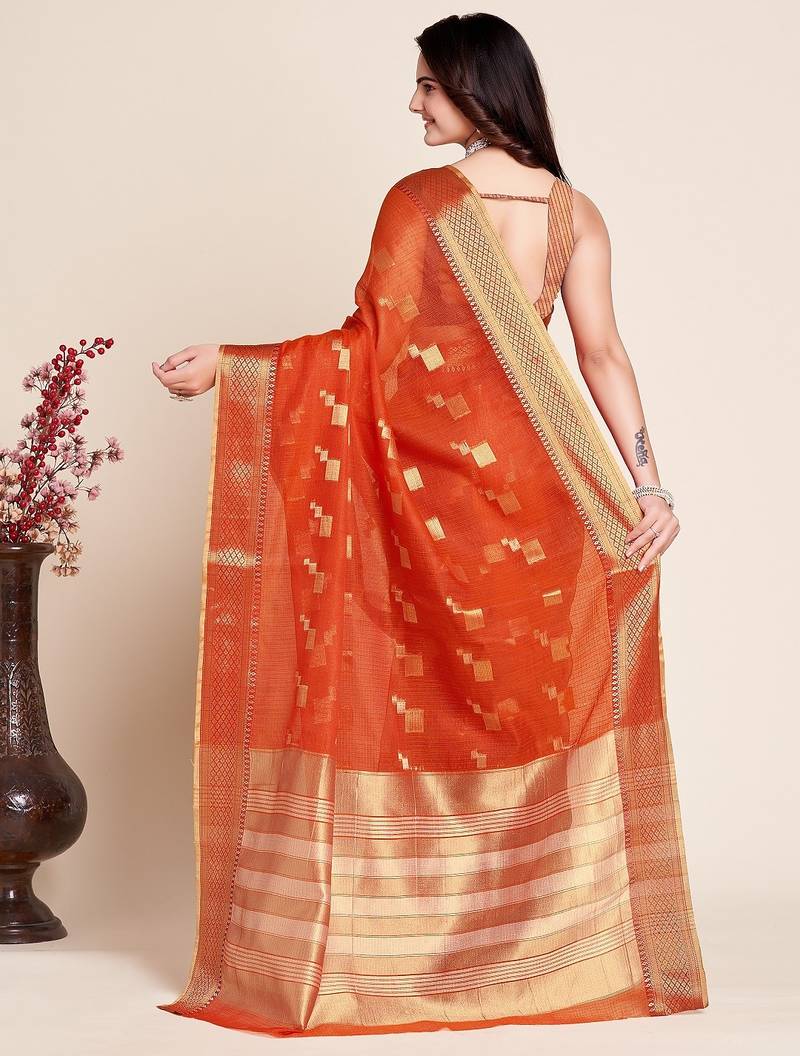 | Product Name | Dark Orange Woven Self Design Kota Doria Kota Doria Saree With Blouse | |
