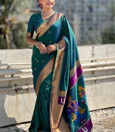 Firozi woven self design pure silk paithani saree with blouse