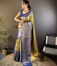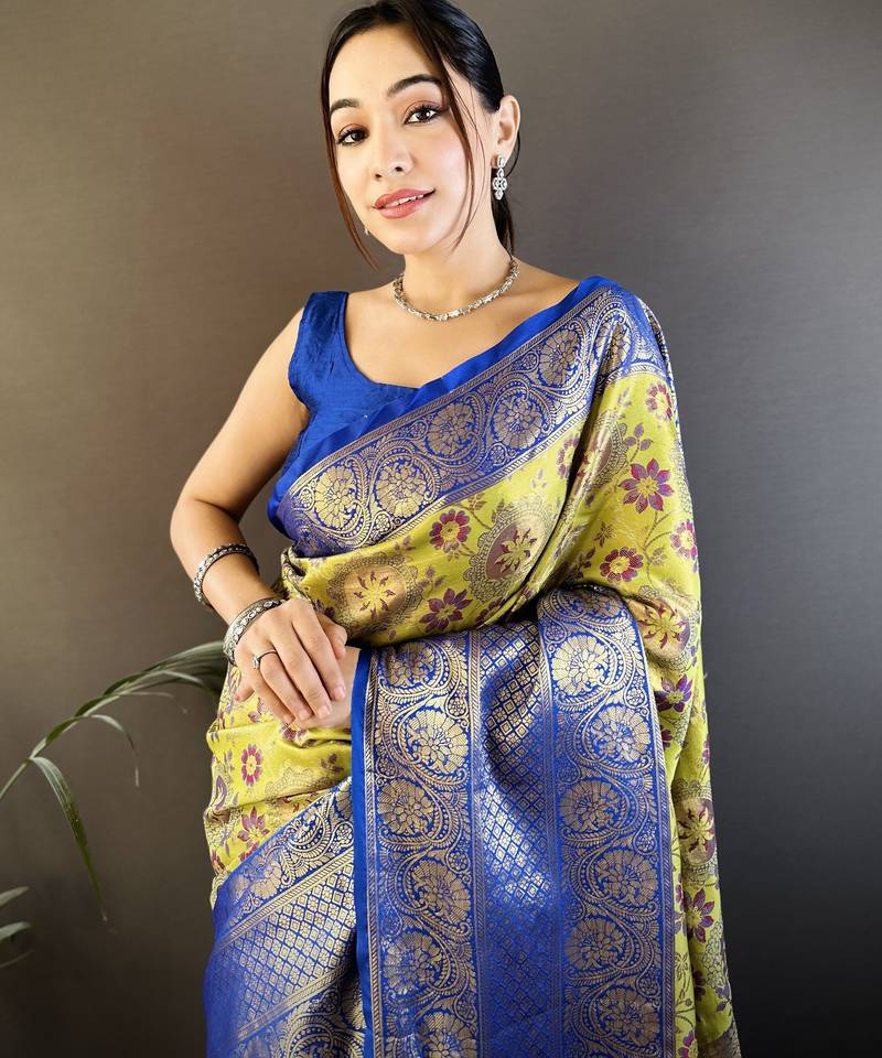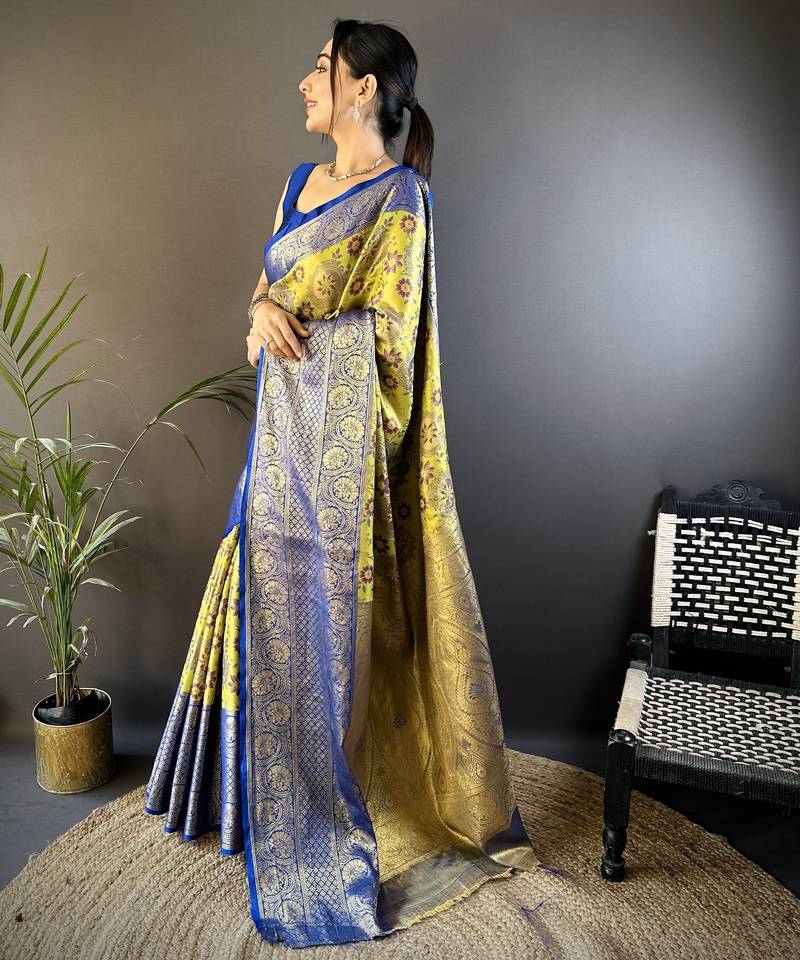 | Product Name | Green, Blue Floral, Zari Woven Kanjivaram Tissue Silk Saree With Blouse | |