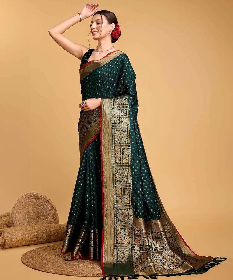 | Product Name | Green Woven Embellished Self Design Pure Silk Banarasi Saree With Blouse | |