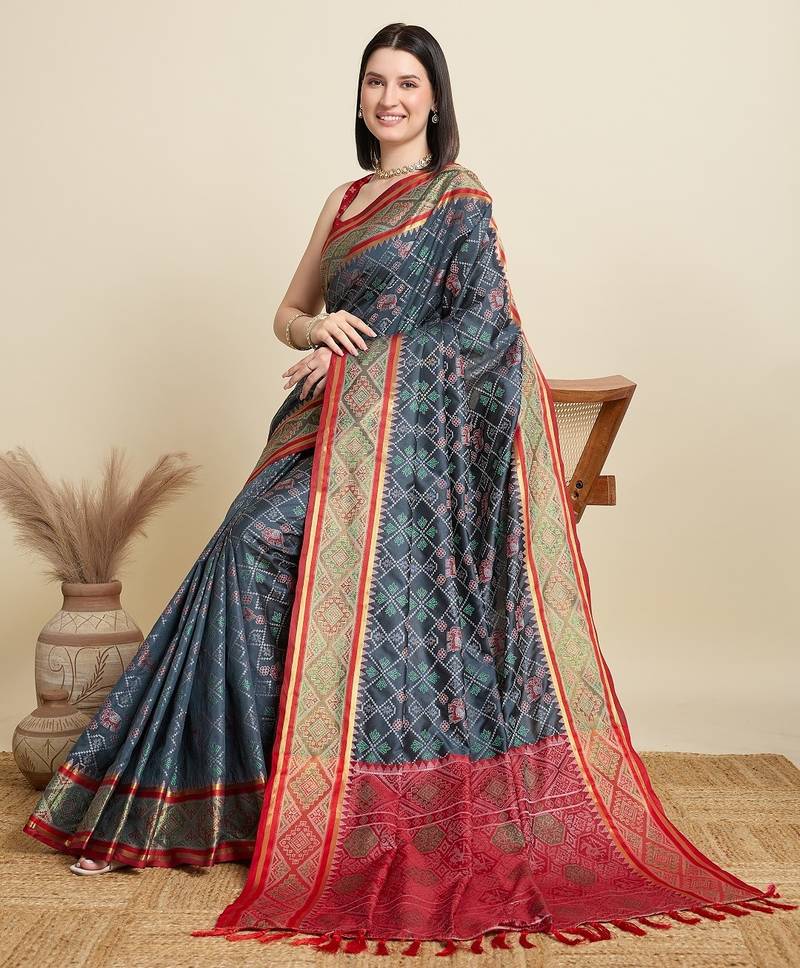 | Product Name | Grey Woven Self Design Embellished Pure Silk Patola Saree With Blouse | |