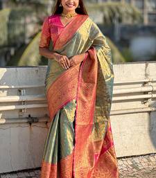Grey woven self design embellished tissue kanjivaram saree with blouse