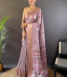 Lavender printed assam silk printed saree with blouse