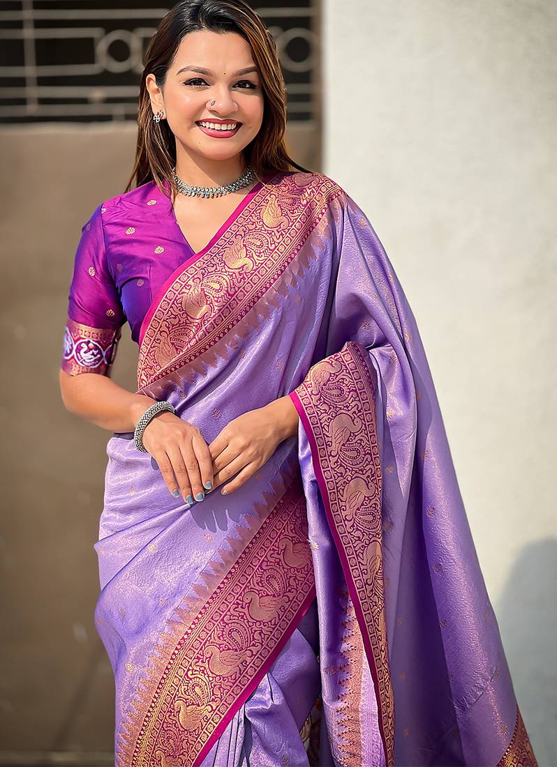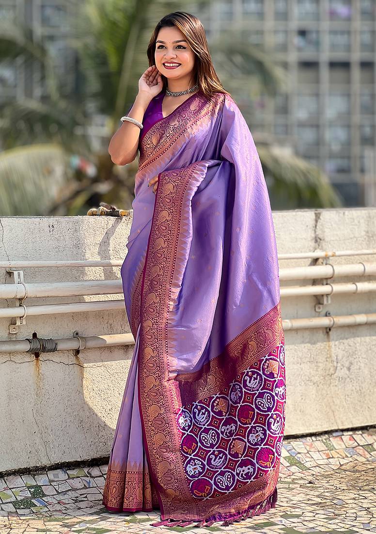 | Product Name | Lavender Woven Self Design Tissue Silk Blend Patola Saree With Blouse | |