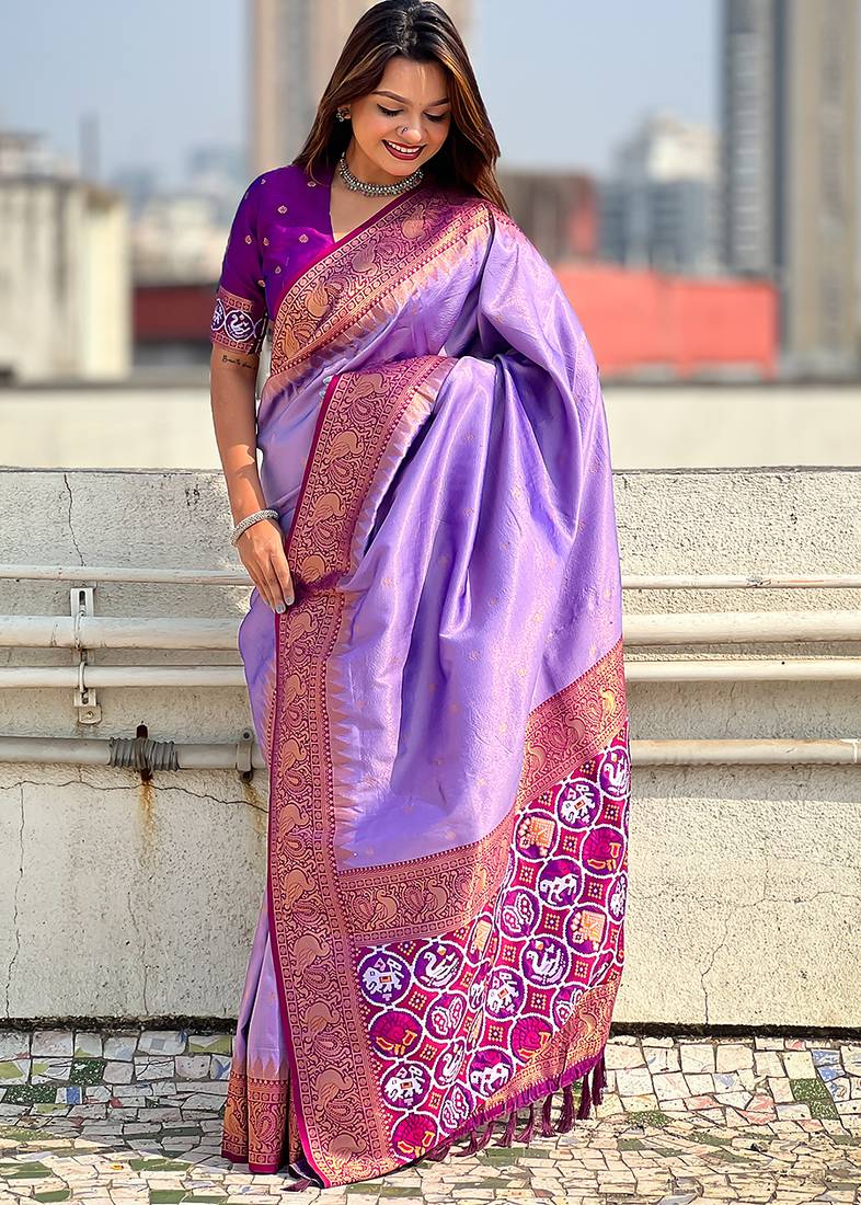 Lavender woven self design tissue silk blend patola saree with blouse