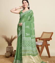 Light green printed color block embellished cotton silk bollywood saree with blouse