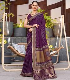 Magenta printed woven cotton silk bandhani saree with blouse