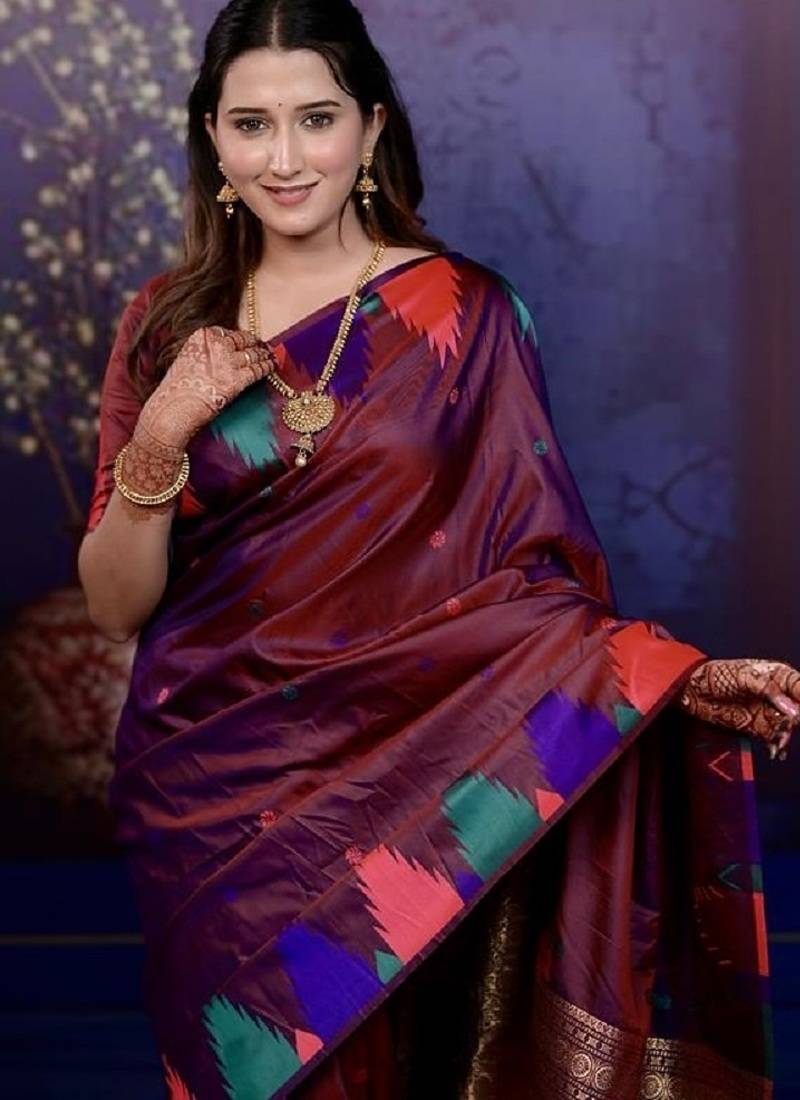 | Product Name | Maroon Temple Border, Zari Work Soft Silk Saree With Blouse | |