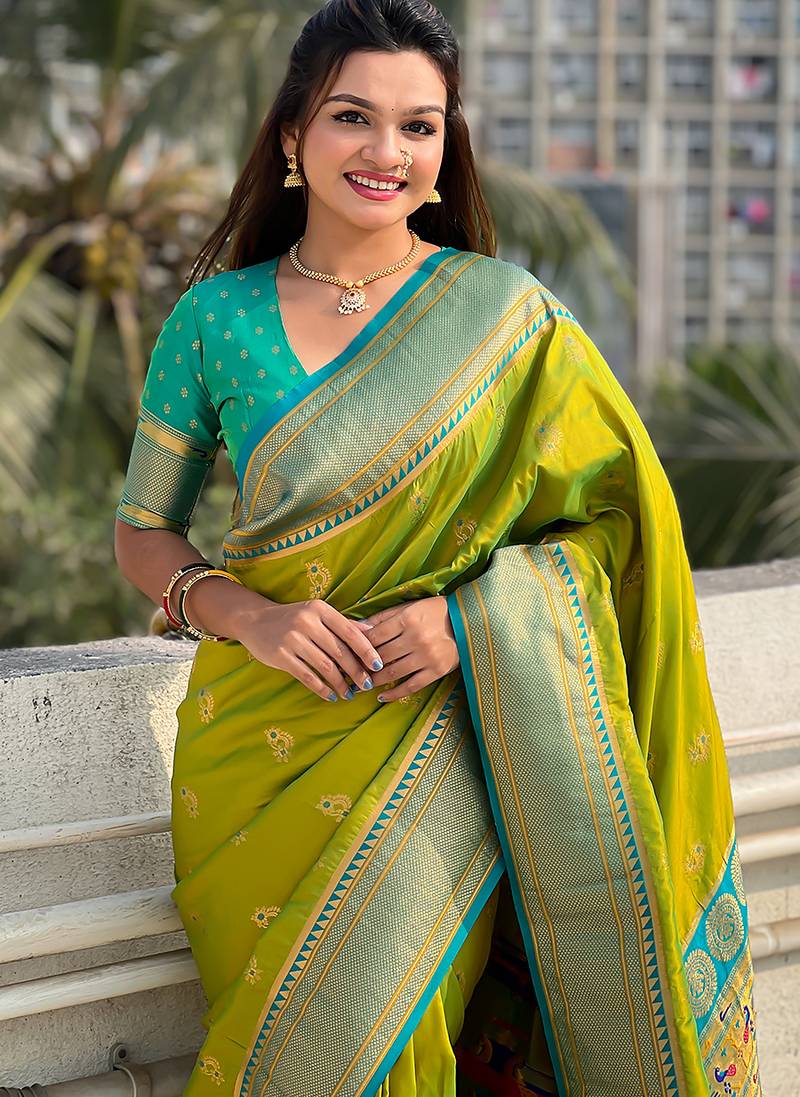 | Product Name | Mehendi Woven Self Design Pure Silk Paithani Saree With Blouse | |
