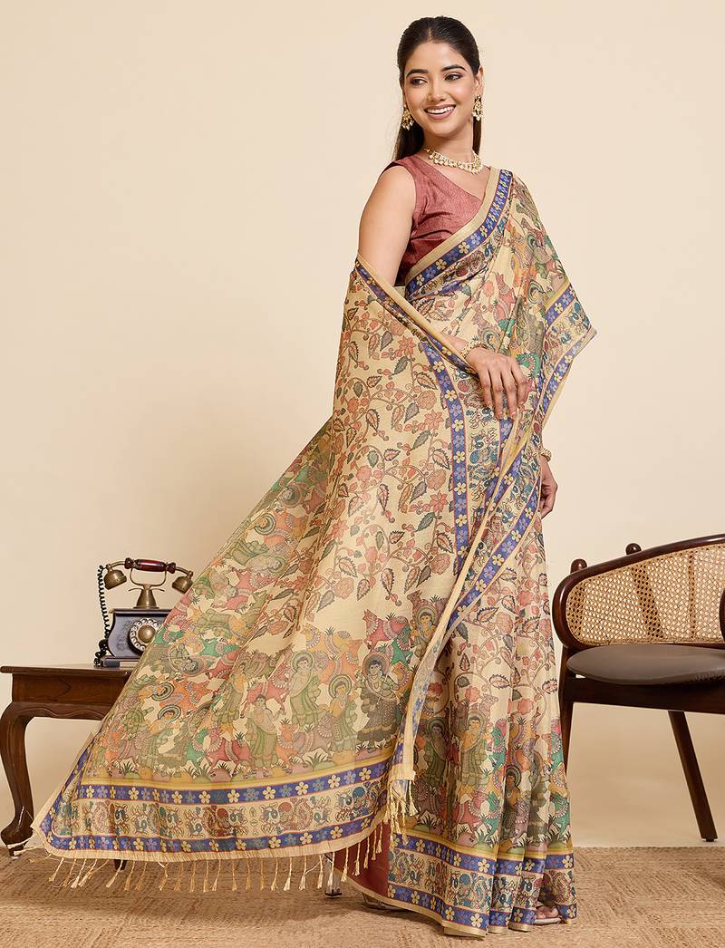 | Product Name | Multicolor Printed Linen Bollywood Saree With Blouse | |