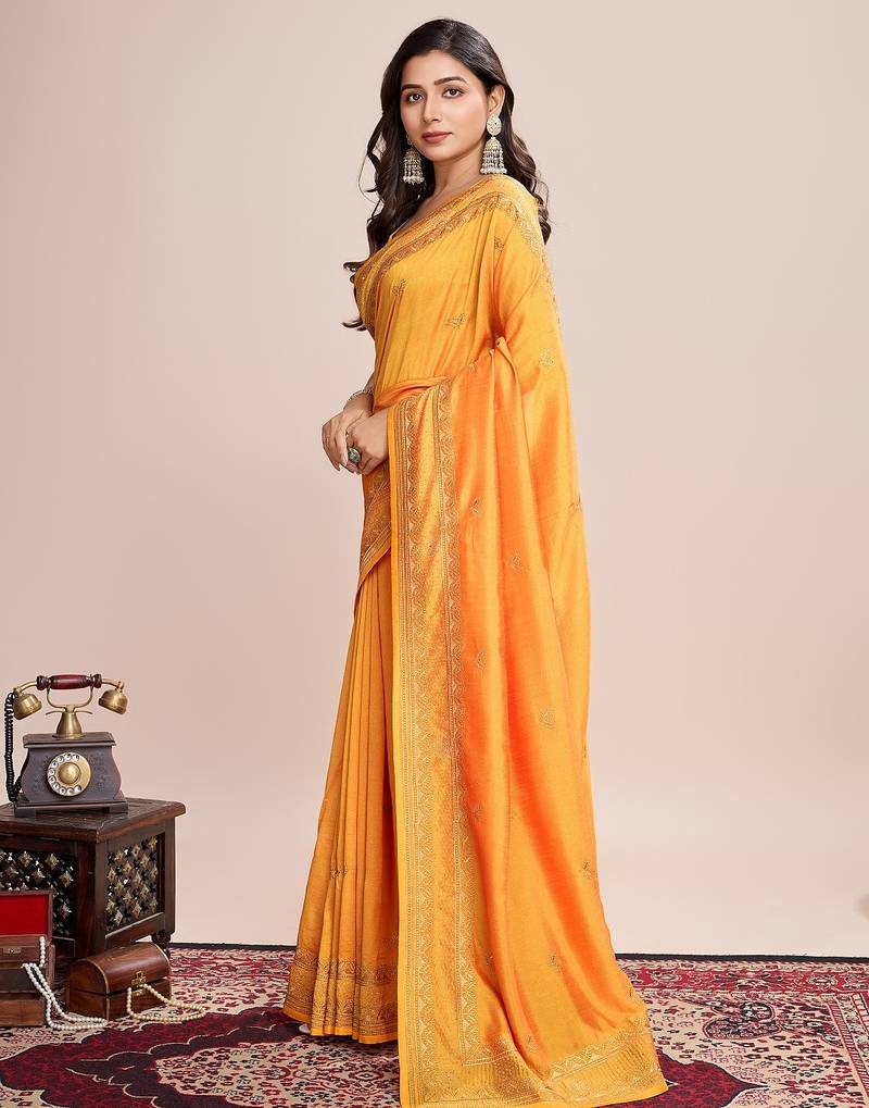 | Product Name | Mustard Embroidered Silk Blend Bollywood Saree With Blouse | |