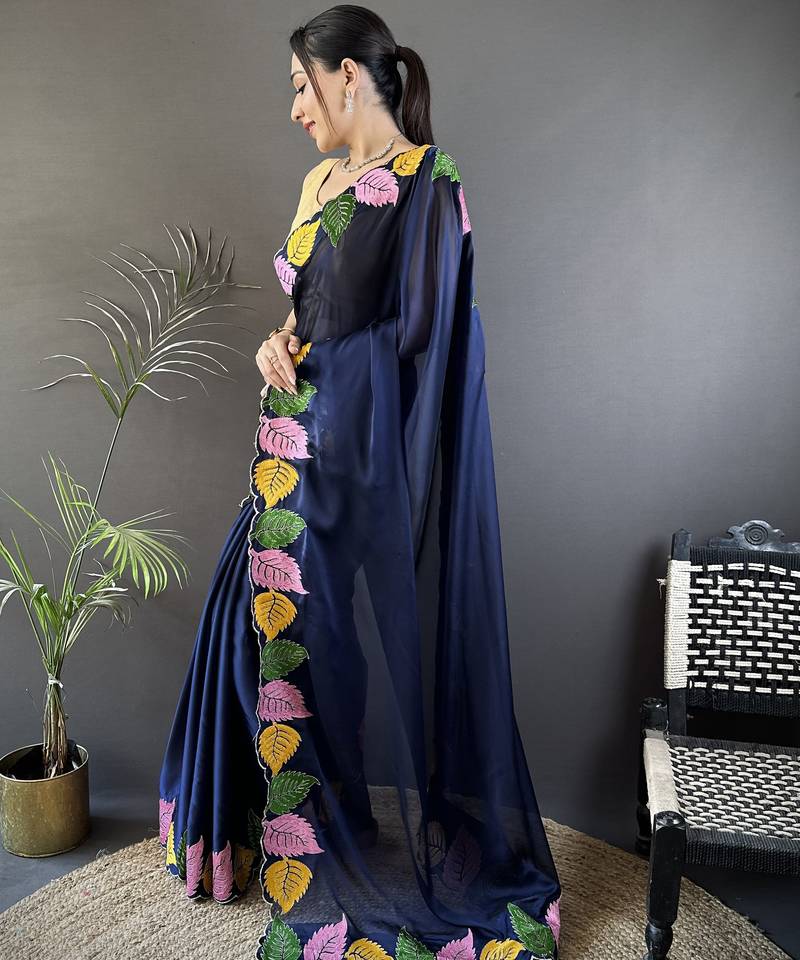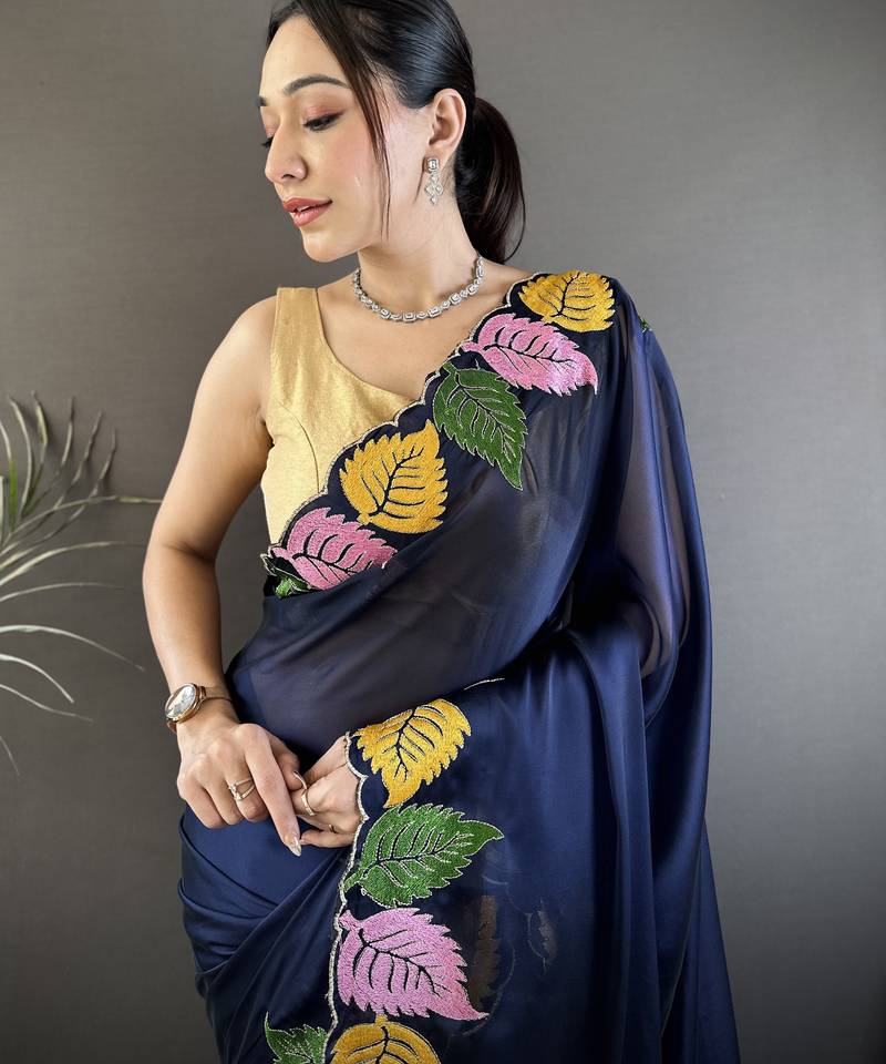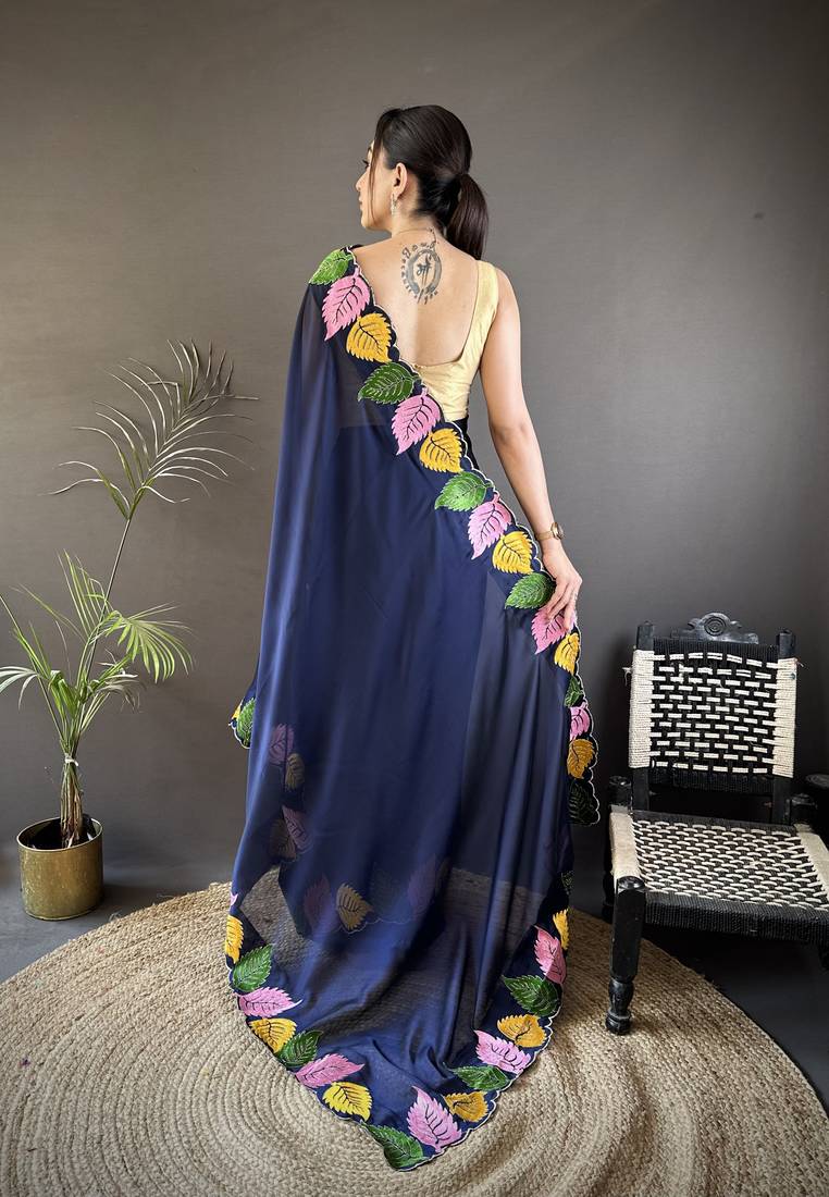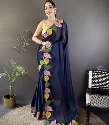 Navy blue floral emboidery, solid rangoli silk saree with blouse