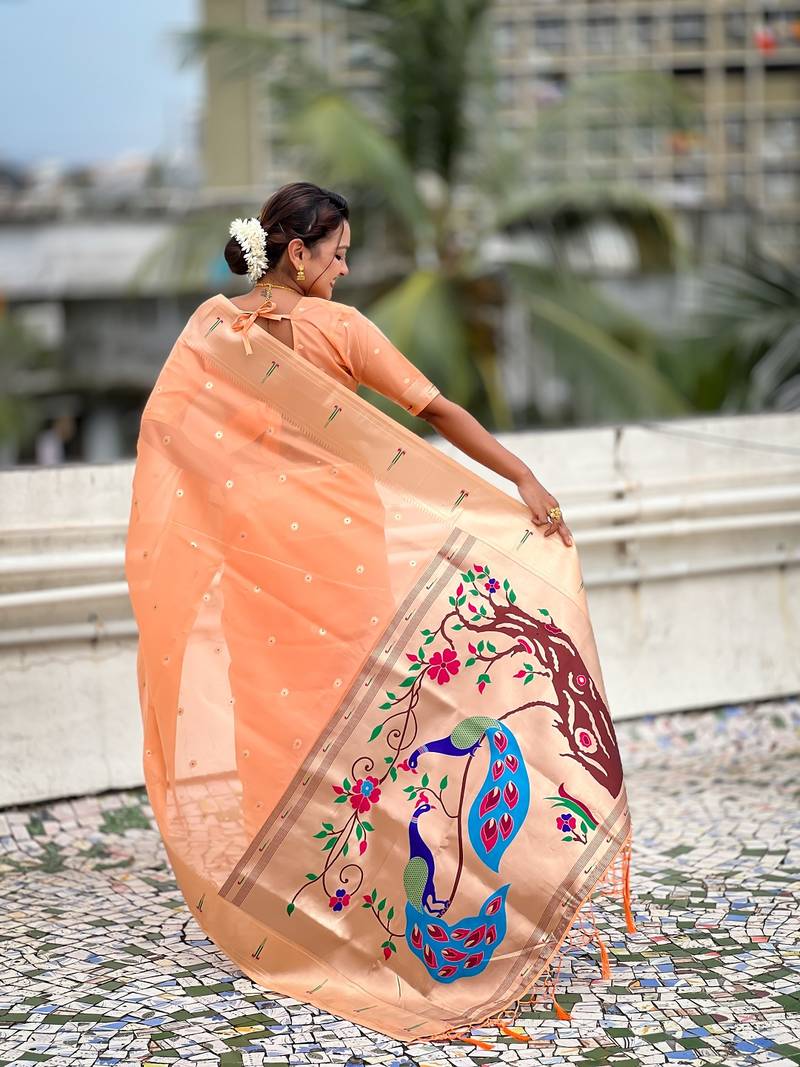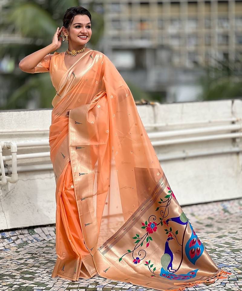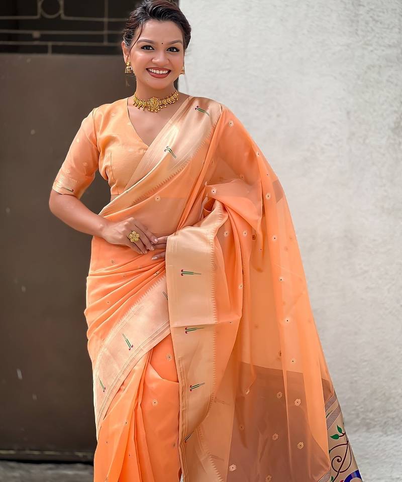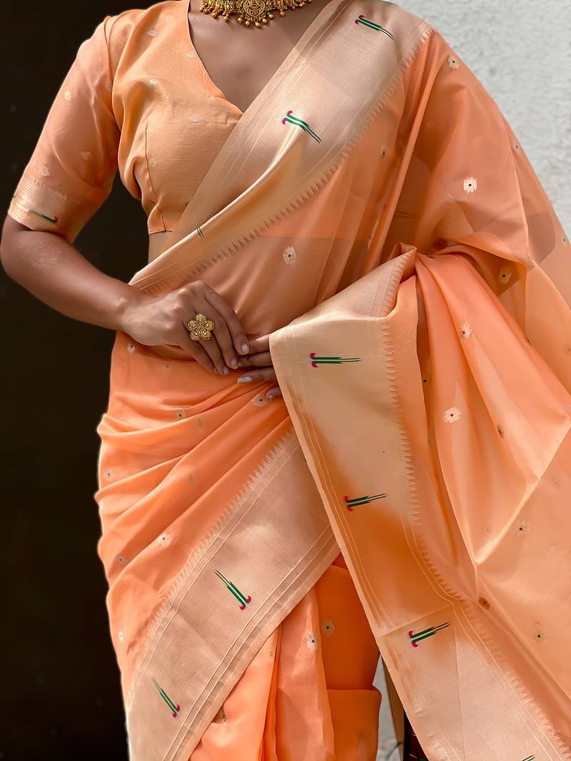 | Product Name | Orange Woven Self Design Organza Paithani Saree With Blouse | |